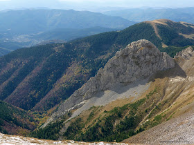 | Descenso Sur hacia el Almadeo desde la brecha de la cresta bajo el castillo. |